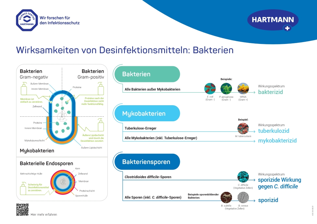 Prüfkeime für das Desinfektionsmittelspektrum "Bakterizidie" sind u. a.: S. aureus, P. aeruginosa, E. coli, E. hirae