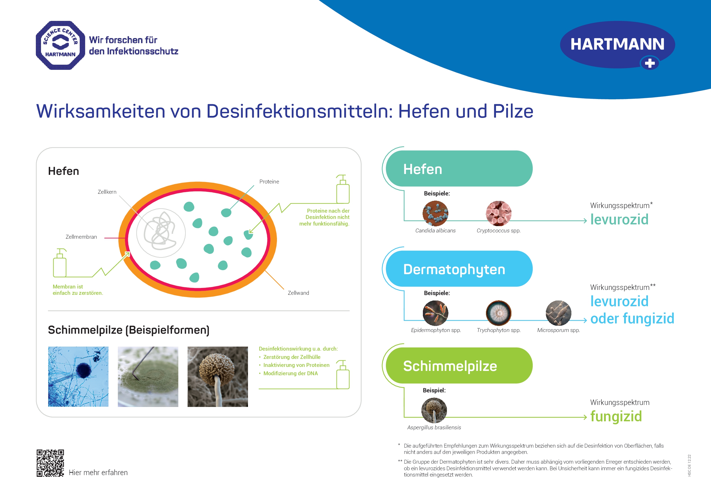 Prüfkeime für das Desinfektionsmittelspektrum "Fungizidie": Candida albicans und Sporen von Aspergillus brasiliensis.