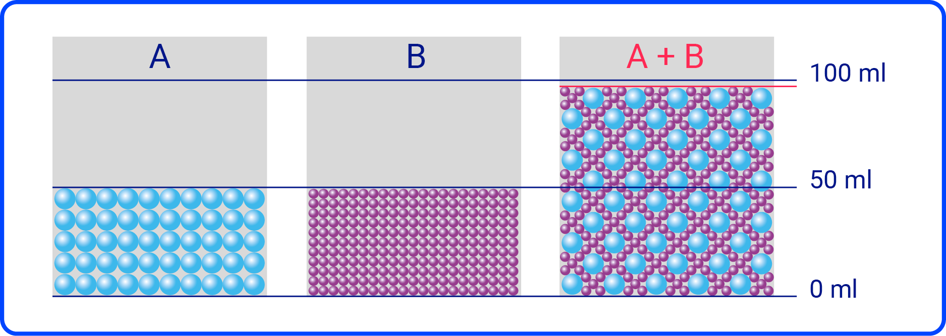 Der Grund für die Unterscheidung ist die Besonderheit beim Mischen von Ethanol mit Wasser: die sogenannte Volumenkontraktion. Diese bewirkt, dass das Mischen von 50 ml Ethanol mit 50 ml Wasser nicht wie erwartet ein Volumen von 100 ml ergibt, sondern weniger. Man kann sich dieses Phänomen so vorstellen, dass sich die Moleküle von Ethanol und Wasser zusammen enger miteinander mischen als bei reinem Ethanol oder Wasser. Hohlräume zwischen größeren Molekülen werden durch kleinere Moleküle ausgefüllt.