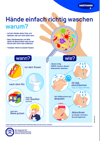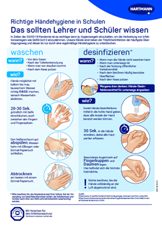 Um den Lehrkräften sowie den Schülerinnen und Schülern anschaulich darzustellen, worauf es bei der Händehygiene ankommt, haben wir Infomaterial für verschiedene Zielgruppen entwickelt.