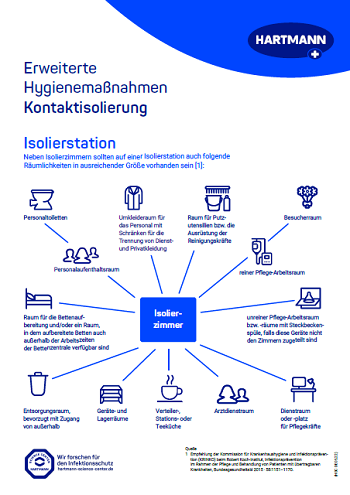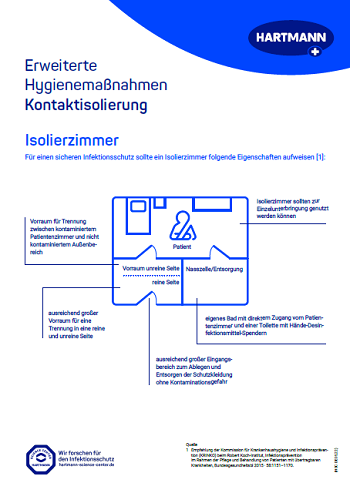 Die Unterbringung von Patienten in Isolierzimmern bzw. Isolierstationen gehört zu den wichtigsten erweiterten Hygienemaßnahmen. Denn die räumliche Isolierung bietet in bestimmten Risikosituationen wie z. B. beim Auftreten von MRSA, 4-MRGN etc. einen höheren Schutz vor der Übertragung auf andere nicht kolonisierte bzw. nicht infizierte Patienten. Das gilt insbesondere auch für die Versorgung immunsupprimierter Patienten. Dabei wird ein ausreichend großer räumlicher Abstand zwischen potenziell infektiösen und infektionsgefährdeten Personen hergestellt. Dementsprechend sollten diese Räume und Stationen auch eine Reihe von Kriterien zu erfüllen [1]: