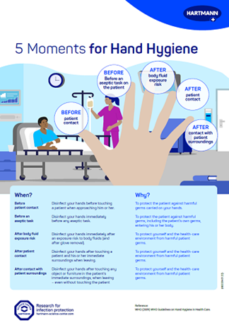 Identify the most important situations in which hand disinfection shall prevent the transmission of pathogens: The 5 Moments for Hand Hygiene